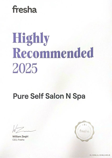 Pure Self Salon N Spa is proud to be recognized with Fresha’s Highly Recommended 2025 Award. This honor reflects the trust and love we have received from our wonderful clients over the years. With more than 14 years of experience in hair, skin and spa care, we continue to set the benchmark as the best beauty salon in Markham. Our talented team offers a range of services, including haircuts, coloring, highlights and keratin smoothing, as well as facials, nail art and laser hair removal, all with the gentle touch of eco-friendly Aveda products. This award encourages us to continually raise the bar and celebrate beauty with passion and care. Thank you for making us your trusted salon in Markham.